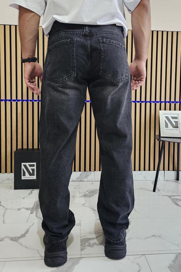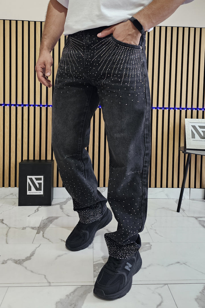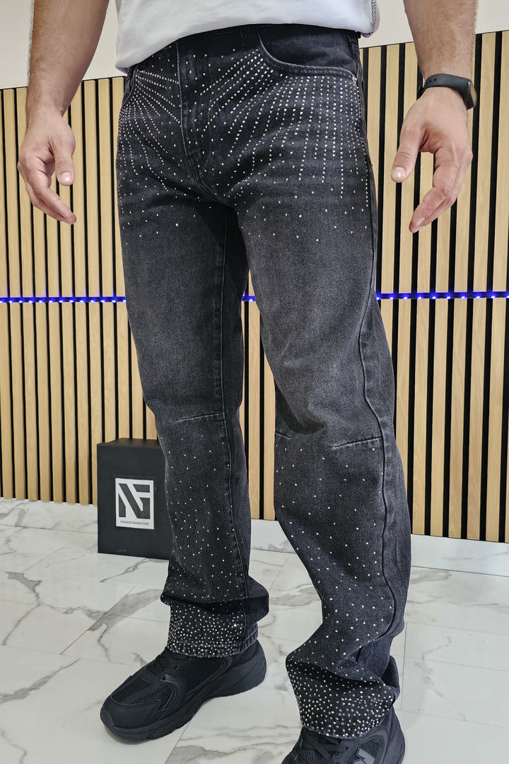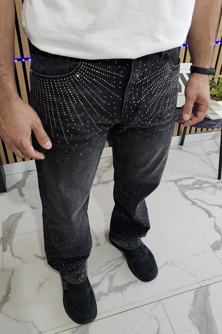 Jeans Straight fit in nero con strass sulla parte alta e alle caviglie, arricchito da baffi. Fit: Straight Dettagli: strass su vita e caviglie Look: nero con baffi