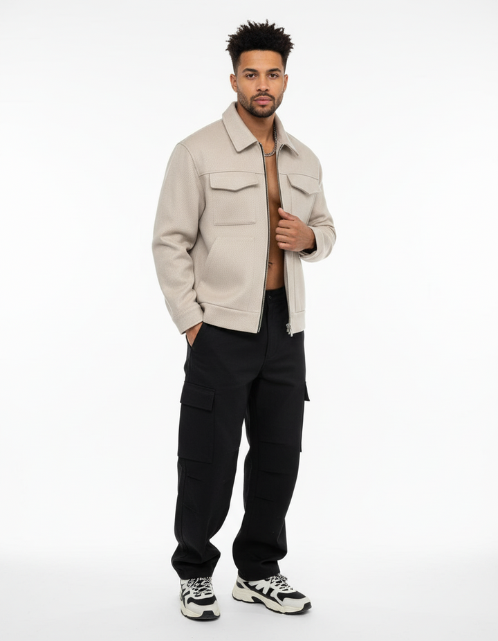 Giacca audace con tasche generose e colletto deciso. Perfetta per chi non ha paura di fare scena e vuole uno stile che non passa inosservato. Un capo che trasuda personalità e carattere, ideale per chi sa quello che vuole e non scende a compromessi con la moda.