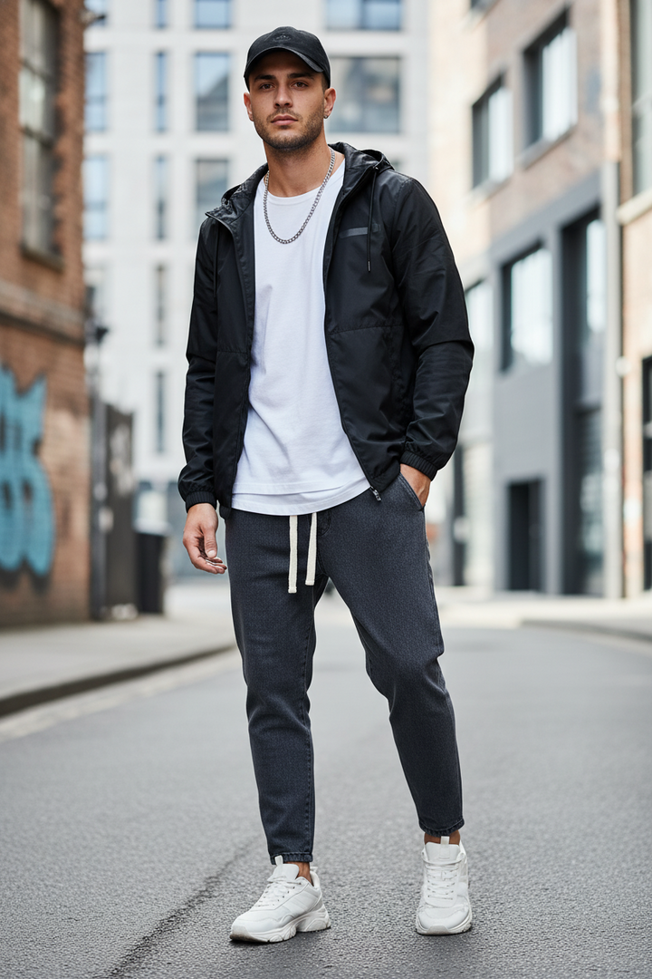 Jeans grigio basic con elastico in vita per un comfort ottimale. Un capo versatile e minimalista, ideale per un look casual e urbano.