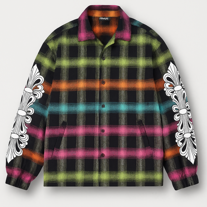 Questa giacca camicia Rainbow unisce stile e originalità con il suo motivo a quadri colorati e stampe distintive sulle braccia. Realizzata con materiali di qualità, è perfetta per chi cerca un capo versatile che valorizzi ogni look, aggiungendo un tocco creativo senza rinunciare al comfort. Ideale per occasioni casual o smart-casual, offre un design contemporaneo in sintonia con le ultime tendenze della moda.
