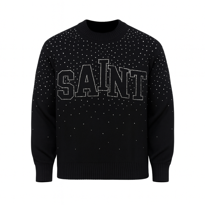 Il Maglione Diamont Saints fa brillare lo streetwear con i suoi strass scintillanti. Perfetto per chi vuole un look audace e divertente, combina comfort e stile con un tocco di energia luminosa.