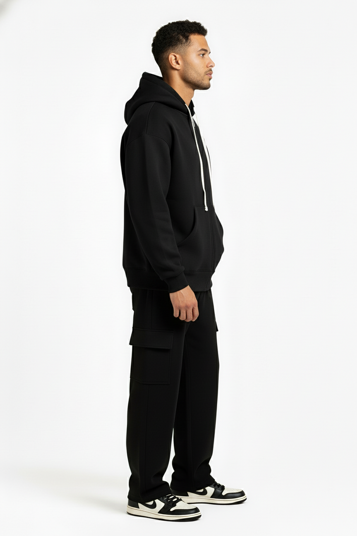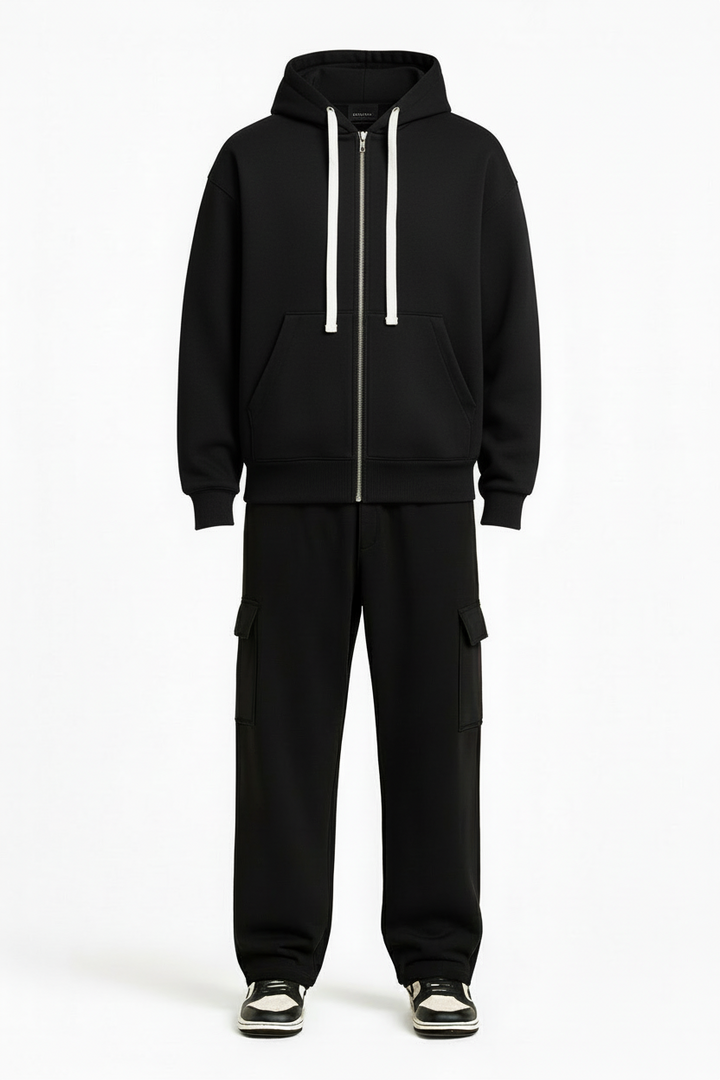 Completo Tuta Felpa Zip - Pantalone Cargo Baggy Felpato