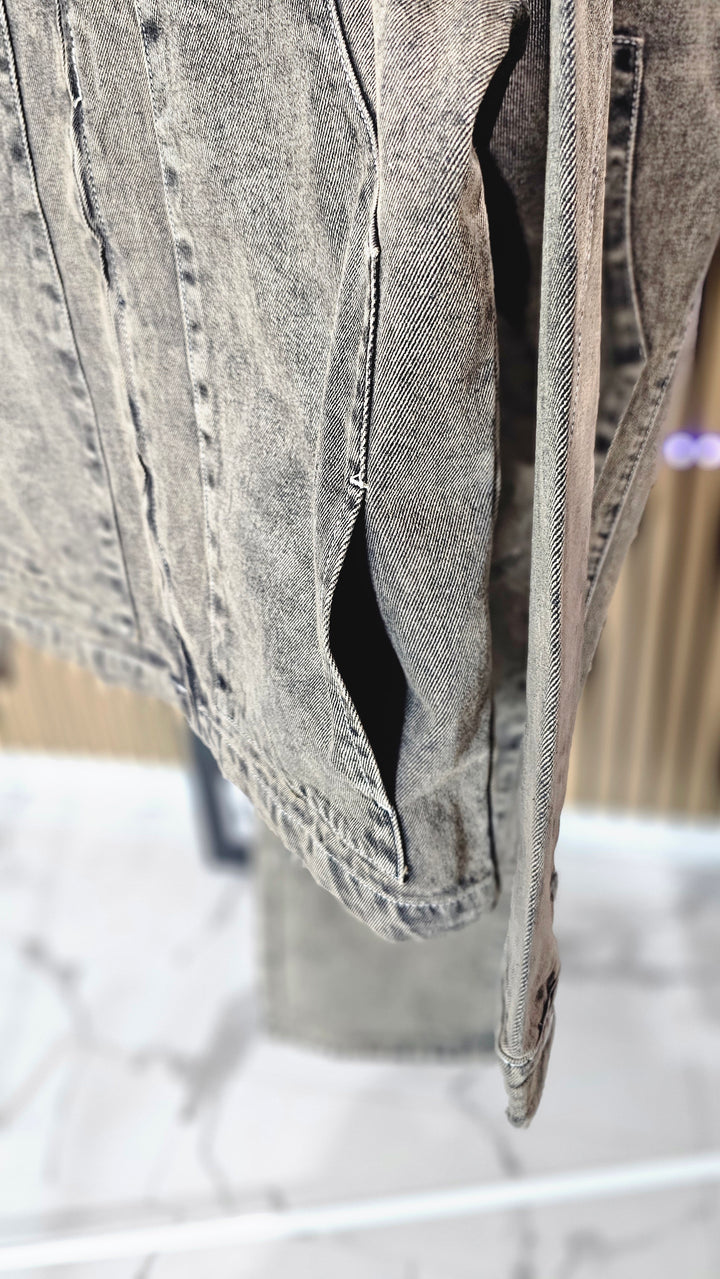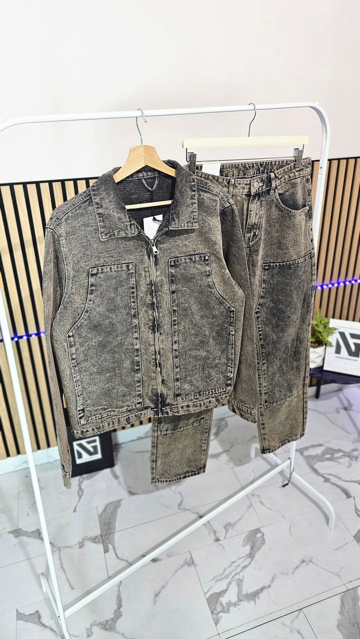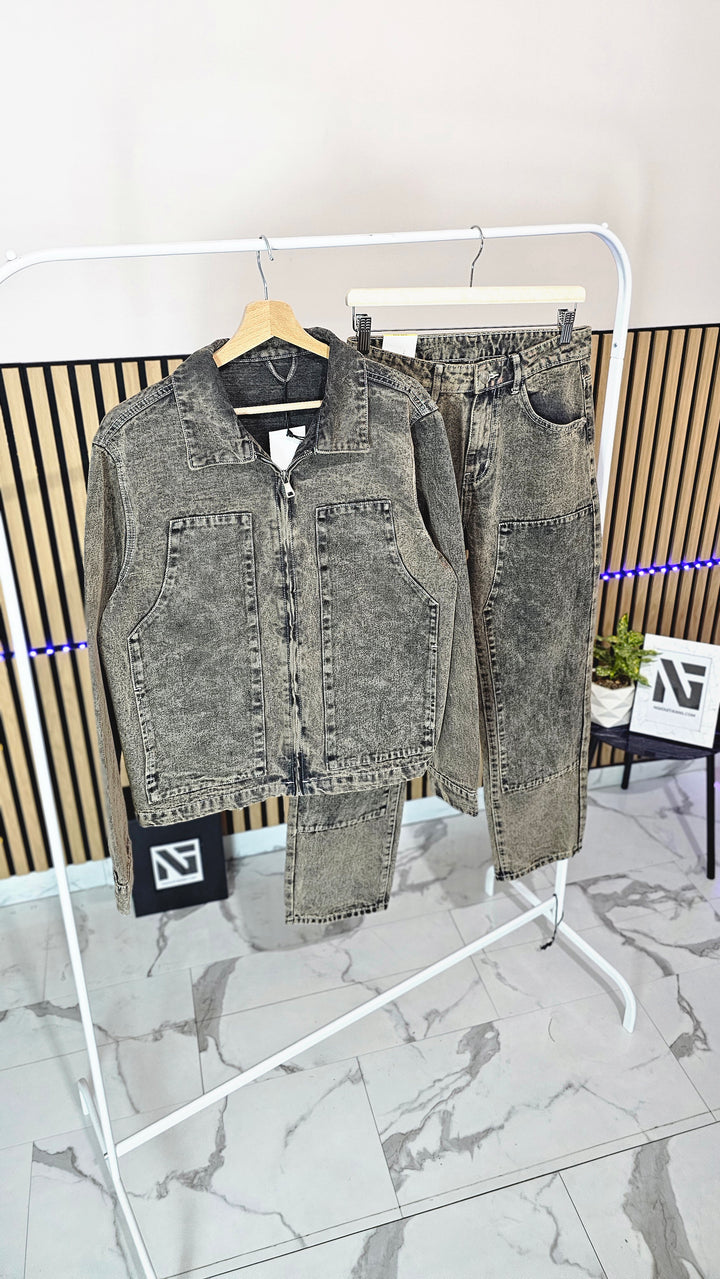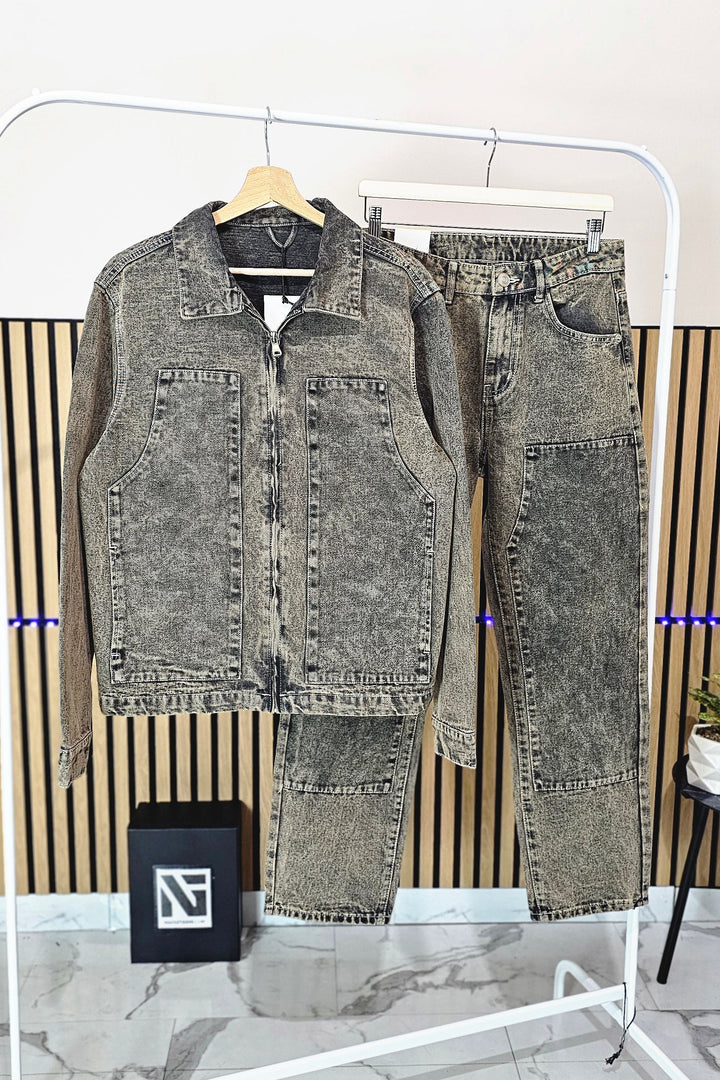 Esprimi il tuo stile con questo set in denim nero slavato, composto da una giacca e un paio di jeans carpenter con dettagli distressed. Perfetto per un look streetwear deciso e di tendenza. Il lavaggio vintage rendono questo completo un must-have per chi ama distinguersi. Ideale per outfit casual o per creare un look urban di forte impatto.