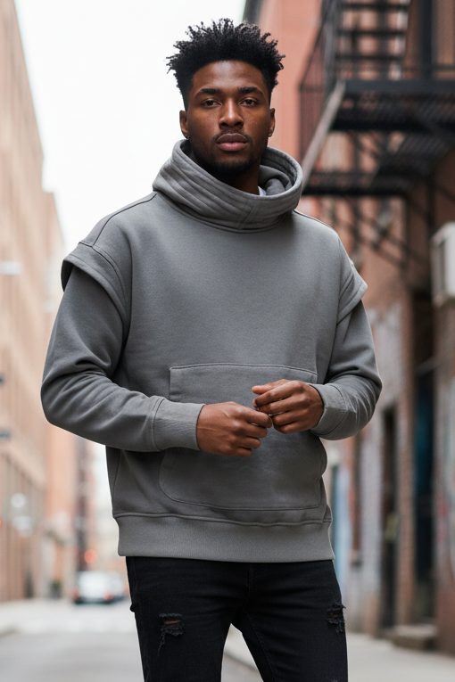 Felpa Collo Alto - Manica Guanto Felpata con Cappuccio