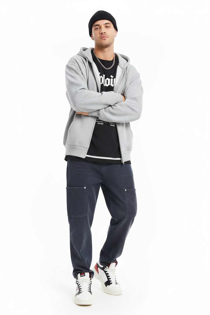 Jeans cargo nero con ampi tasconi laterali per un look deciso e pratico. Comodo e resistente, ideale tutti i giorni.