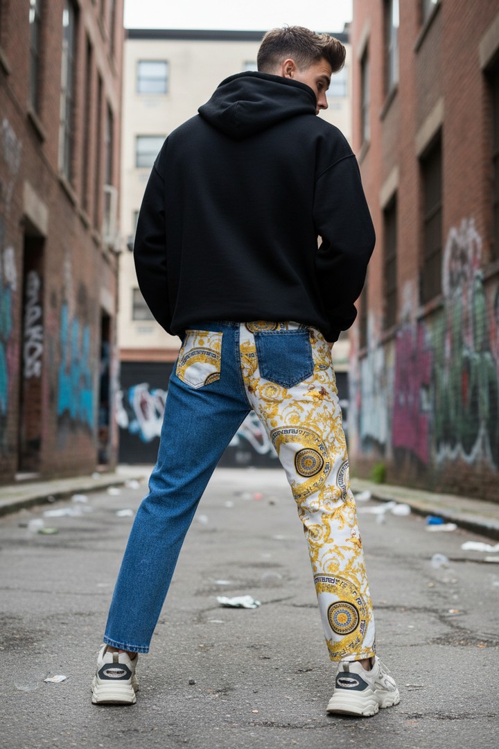Questo jeans mom fit combina un tocco vintage con dettagli moderni, risultando in un capo che unisce comfort e stile grintoso. La vestibilità mom fit, caratterizzata da una vita alta e una gamba leggermente affusolata, offre un look rilassato ma allo stesso tempo definito. Le patch creative aggiungono un tocco originale e dinamico. Perfetti per un outfit streetwear, questi jeans si abbinano facilmente a t-shirt oversize, crop top o camicie casual, garantendo un look fresco e audace.